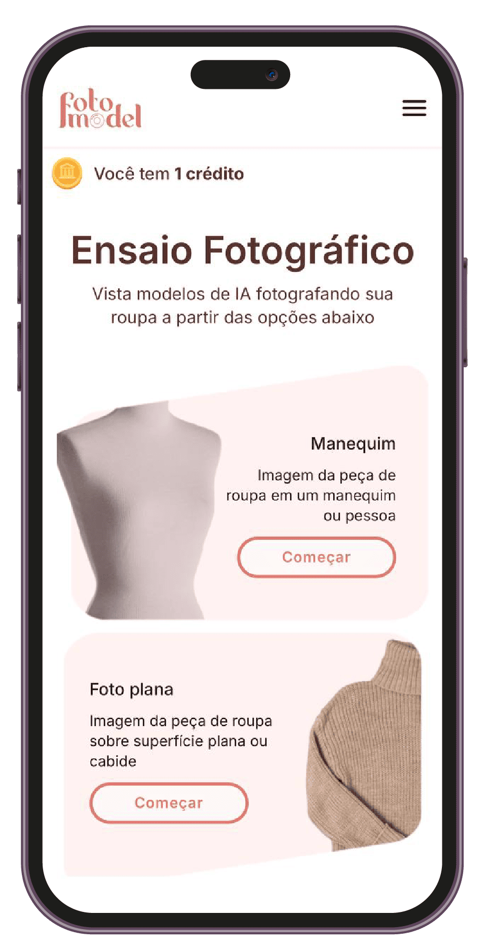 Com o FotoModel, você elimina os altos custos e a complexidade das produções fotográficas tradicionais. Nosso aplicativo une inteligência artificial e praticidade, criando imagens profissionais em minutos.
