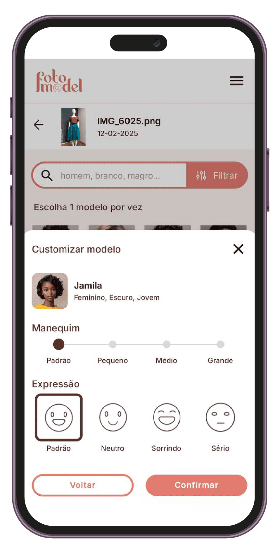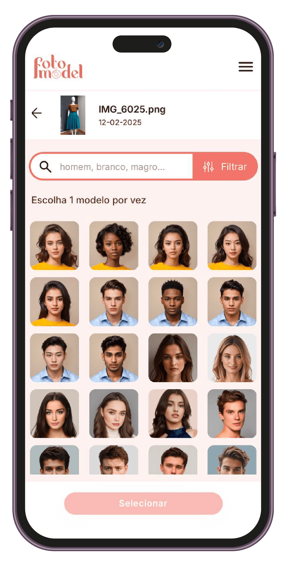Graças à sua avançada tecnologia de inteligência artificial, o FotoModel garante resultados realistas e altamente personalizáveis. Seja para coleções femininas, masculinas, infantis ou sênior, a plataforma conecta-se de maneira única ao público-alvo, refletindo diversidade e estilo.